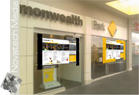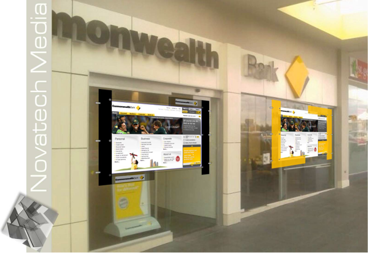 Following are a few concept solutions to illustrate potential with our Digital signage solutions structured around our unique Attraction Screens of 100 inches size. Similar size LCD’s or plasma screens are considerably more expensive and also with much less effect on passing public. The effect of glass panel producing beautiful images is fantastic, intriguing and attractive – “3 seconds rule” to create attention and send a message is easily achieved and well appreciated by professional marketing experts.