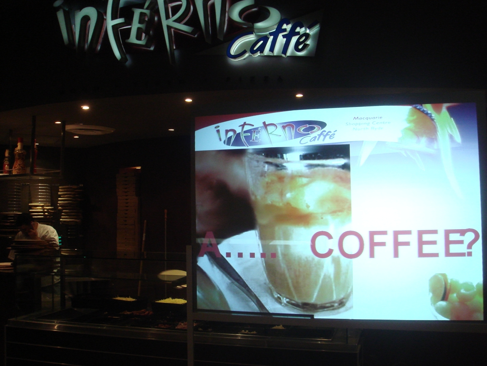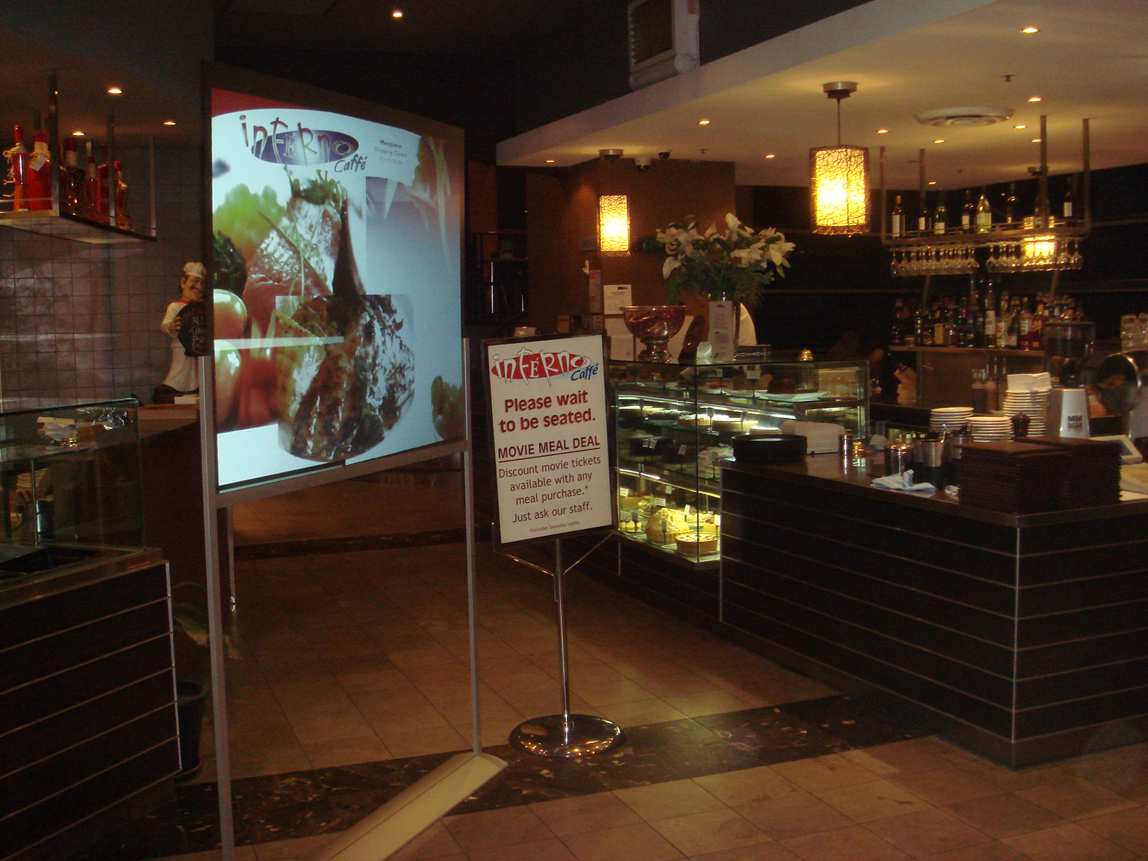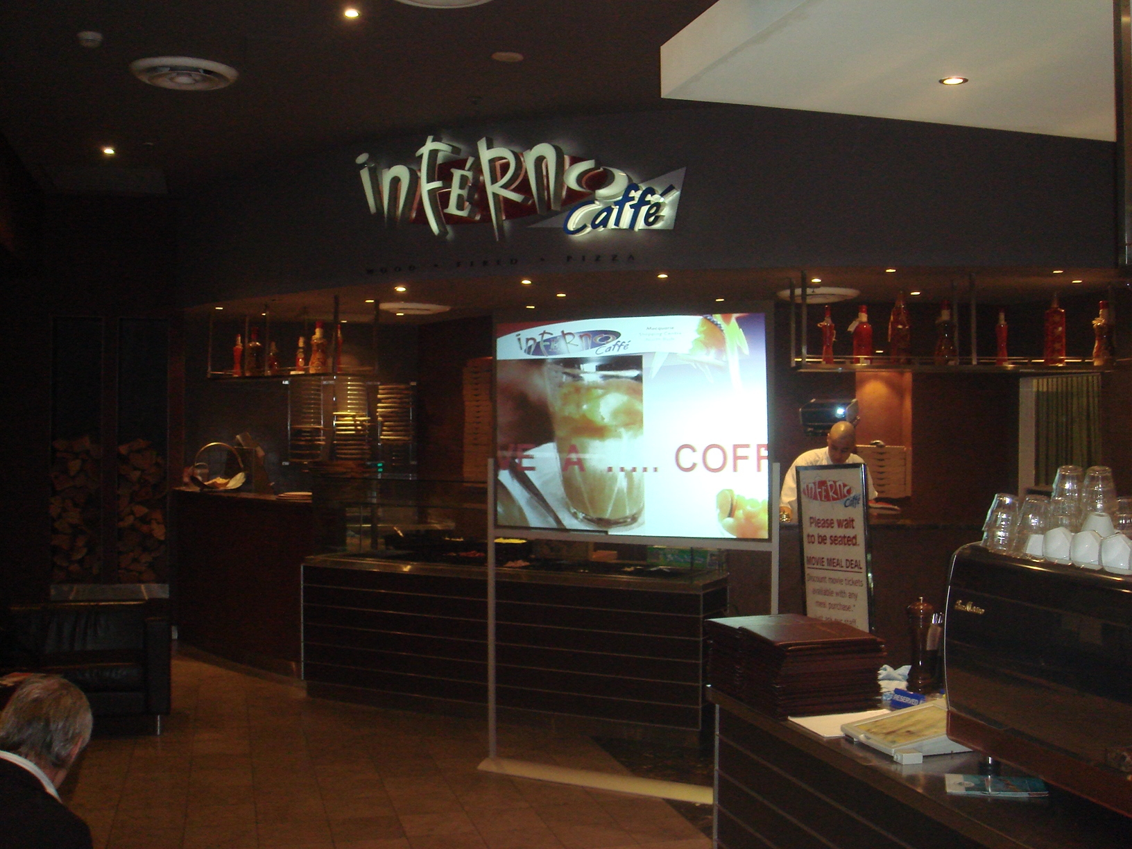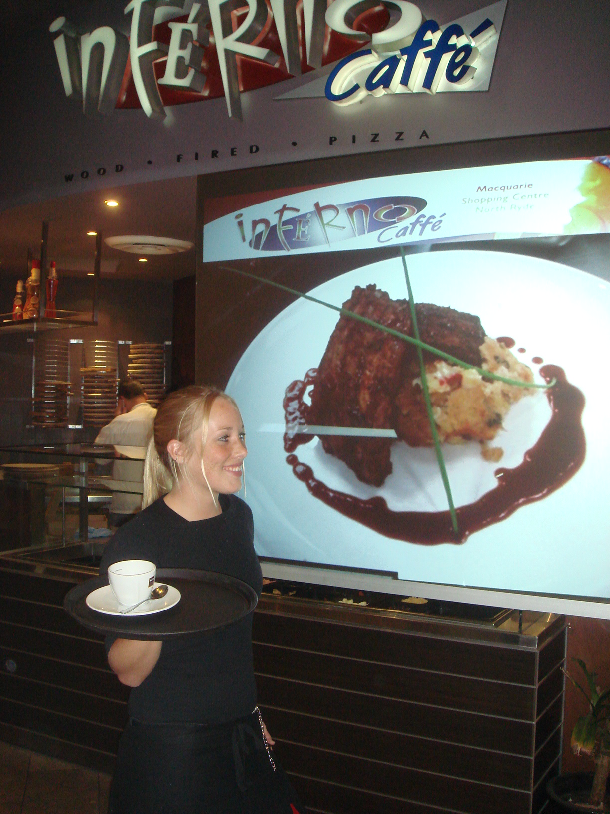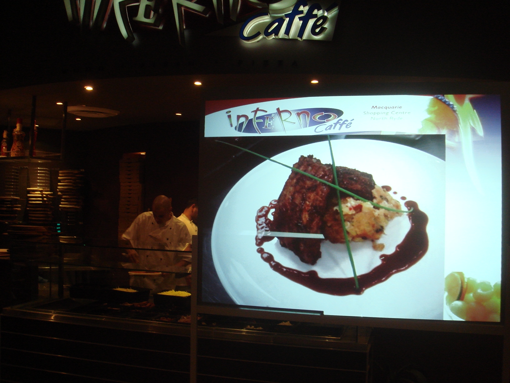 Popular Pizza restaurant and meeting place in one of major shopping centres in Sydney’s suburbs used 70 inch (about 1,800mm) diagonal Rear Projection System to advertise mouth watering menu to their clients.