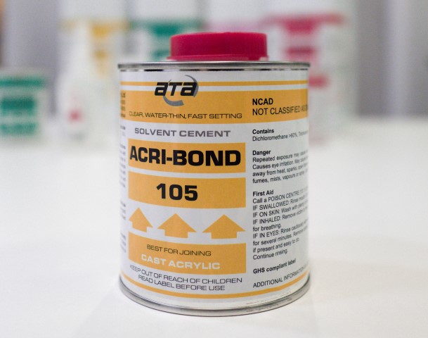 This adhesive has been design for bonding Acrylic to Acrylic. Also, shows good results bonding Polycarbonate, HIPS, ABS and PETG to itself. Test before use for mixed or other plastic material combinations.