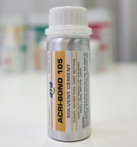 Parts to be joined should fit without forcing and be clean. Apply adhesive with suitable applicator and assemble while parts are still wet. Press parts together in firm contact. ACRI-BOND 105 forms initial bond very quickly. Strength develops rapidly reaching full strength in 24 to 48 hours leaving no dry residue.