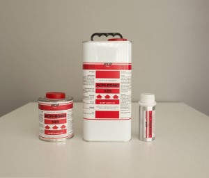 | All our adhesives are supplied in UN-approved metal containers made of quality steel. For prolonged shelf life and safe storage we provide a safety sealed cap. Squeeze side safety clip to unwind the red cap. |